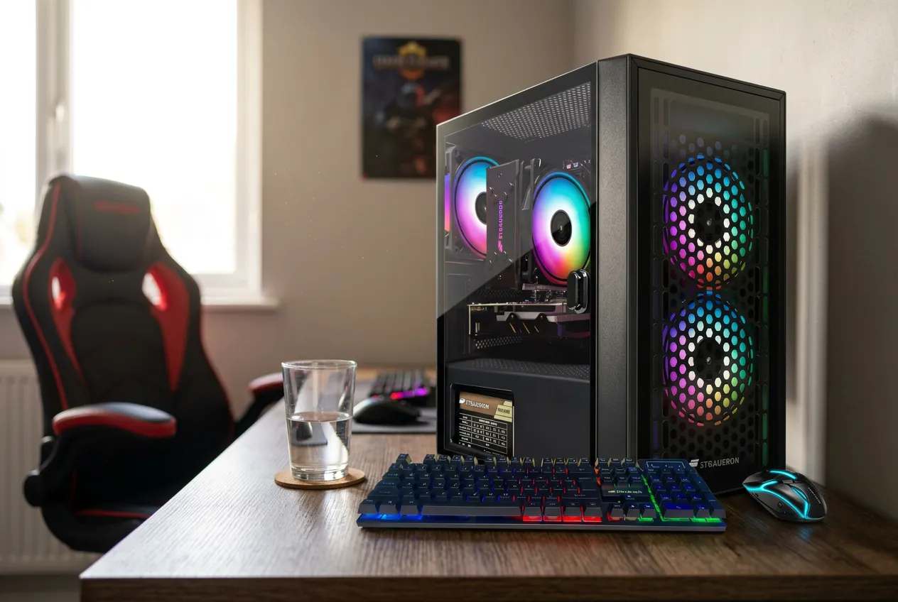 This system delivers solid gaming performance with an Intel Core i7 processor and a dedicated graphics card, making it a reliable choice for your desk. Four RGB fans ensure the components stay cool, allowing you to focus on your games or creative projects without distraction. A 512GB SSD provides fast loading speeds, keeping your workflow efficient and your gaming sessions uninterrupted.